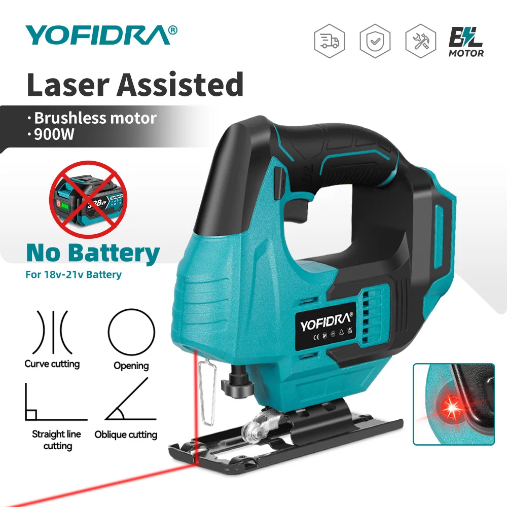 요피드라 무브러시 전기 직소 곡선톱 다기능 파이프 절단 전동공구 (마키타 배터리 핀용 레이저 보조 기능 포함)