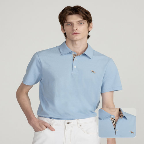 닥스 남성 [워셔블] [닥스훈트] 라이트블루 체크 배색 반팔 카라 티셔츠 (DMTS5B501B1)