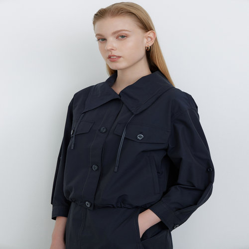 닥스 여성 [클리어런스][SET-UP] 네이비 솔리드 빅카라 사파리 자켓 (DLJA4D801N3)