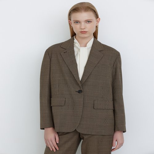 닥스 여성 [클리어런스][SET-UP][울] 베이지 투톤 체크 테일러드 자켓 (DLJA4D803I3)