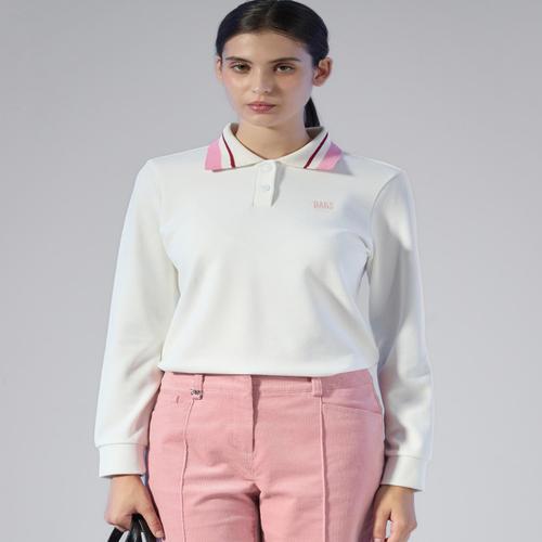 닥스 골프 여성 [PREMIUM] 화이트 후로피 디테일 니트 카라 티셔츠 (DNTS5D715OW)