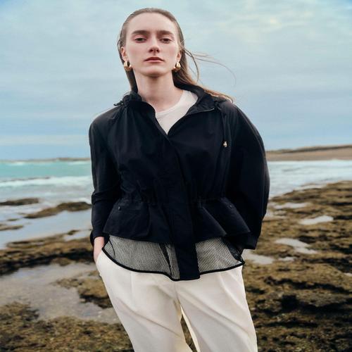 닥스 여성 아이보리 체크배색 셔링넥 경량 바람막이 점퍼 (DLJU5B413IV)
