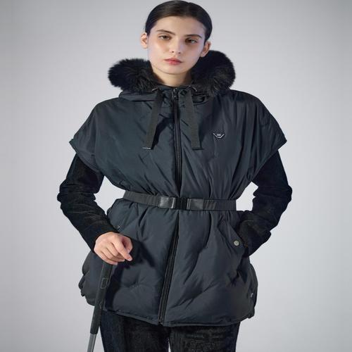 닥스 골프 여성 25FW INHERITANCE 블랙 화이트 폭스 카라 구스다운 점퍼 DNJU5D851BK