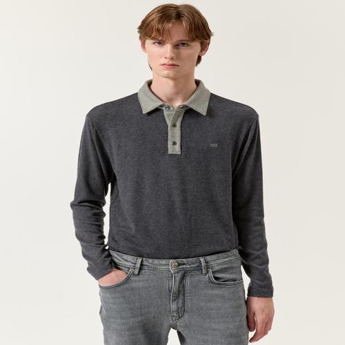 닥스 남성 [LF몰단독]그레이 코튼 혼방 컬러블럭 카라 티셔츠 (DMTS5C302G2)