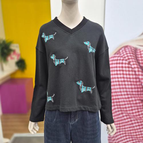 [베네통]베네통 닥스 훈트 자수 티셔츠 BATS54461 BK