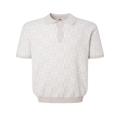코튼100% 베이지 닥스 로고 자카드 카라넥 반팔 스웨터 (DMSW5BN05I1)
