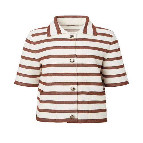 [닥스]스트라이프 반팔 카라니트 브라운_DLS1SWTS107W1