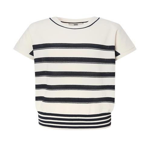 닥스 여성 베이지 스트라이프 면혼방 반소매 니트 (DLSW5B415I2)