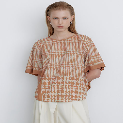 닥스 여성 [클리어런스]오렌지 하운드투스 패턴 케이프형 반소매 블라우스 (DLBL4C703O3)