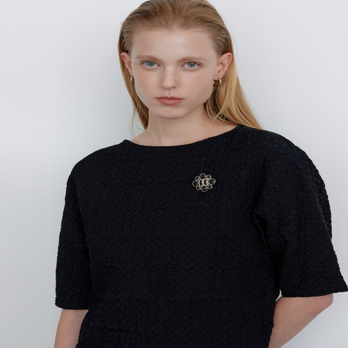 닥스 여성 [클리어런스][SET-UP] 블랙 하운드투스 자카드 반소매 블라우스 (DLBL4C701BK)