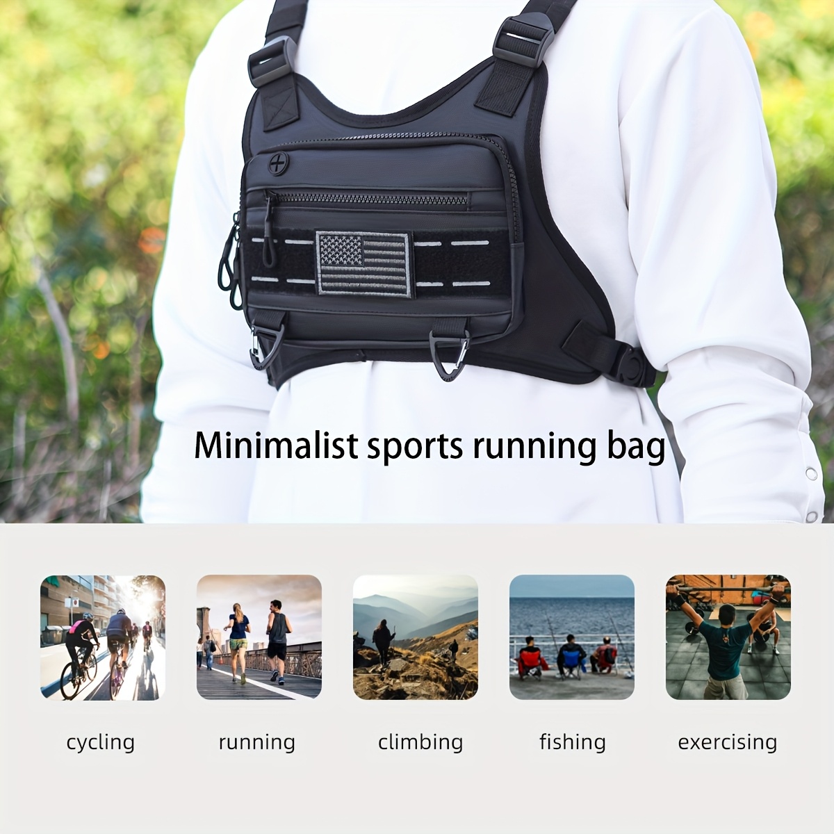 TEMU 남성용 다기능 하이킹 체스트 백, 훈련, 러닝 및 스포츠에 적합; 사이클링 및 보관을 위한 조끼 스타일의 공구 파우치