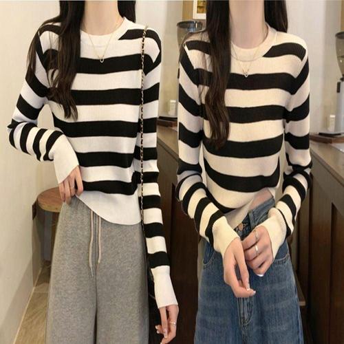 [엄지척]여자 스트라이프 스타일 니트 긴팔티 1P 고품질 가을_19643626_667501