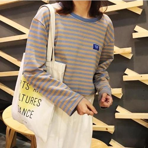 [셀러허브_여성트랜드패션]여자 롱슬리브 스트라이프 캐주얼 루즈핏티 긴팔티