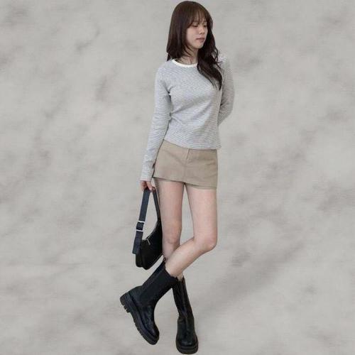 [다잇템]여성 단가라 캐쥬얼 보온 U넥 긴팔티