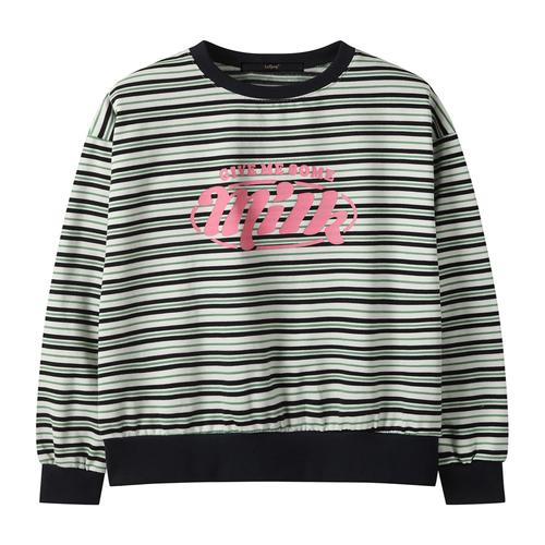 Novastar 여성 스트라이프 빅사이즈 루즈핏 캐주얼 긴팔 맨투맨 라운드 맨투맨 춘추핏