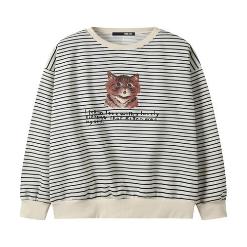 [비엔엑스]단가라 캣 프린팅 기모 맨투맨 티셔츠 (BX4TS009L0)