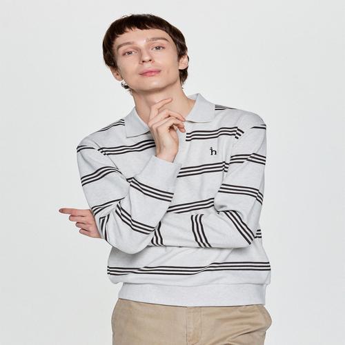 헤지스 남성 오트밀 스트라이프 오픈카라 맨투맨 (HZTS5D345OW)