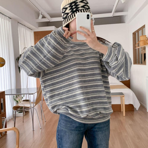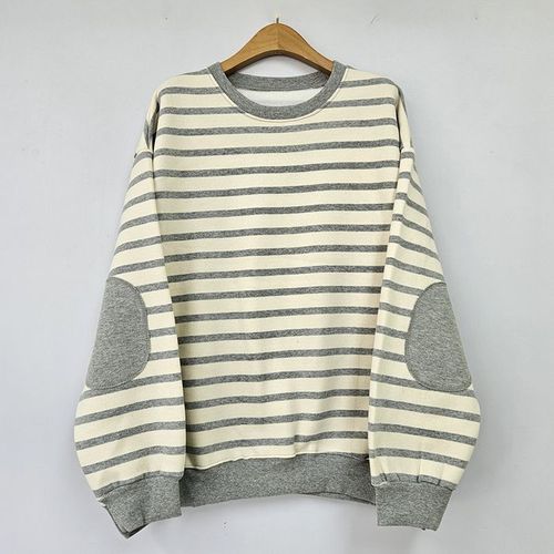 크레스티 여성 스트라이프 캐주얼 맨투맨 가을 겨울 루즈핏 도톰 라운드 맨투맨
