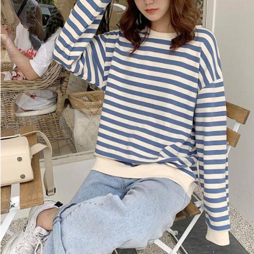 [오너클랜]인기상품 여자 데일리 루즈핏 스트라이프 맨투맨 긴팔 티셔츠 [WB126C7_250918]
