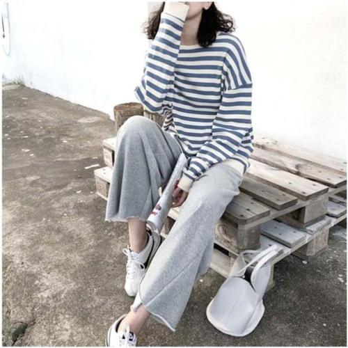 [셀럽하우스]약 ELUT7031 홈 스트라이프 맨투맨 롱 베트남 우아한 M