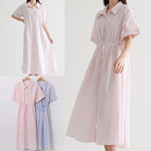 [셀러허브_여성트랜드패션]ONM 단정하고 편한 카라 반팔 잔스트라이프 미니원피스
