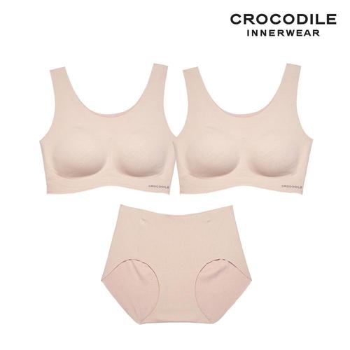 [크로커다일] 소프트핏 쉘론 U넥/V넥/스트랩 패드일체형 브라2+팬티1 택 1