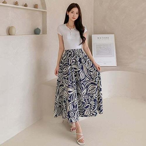 [셀럽하우스](당일발송/5577) PZZU5863 트로피칼 플레어 롱 맥시 스커트
