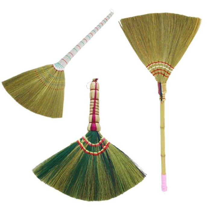 엄지척 대나무 고급 손잡이 빗자루 갈대 다용도 방비
