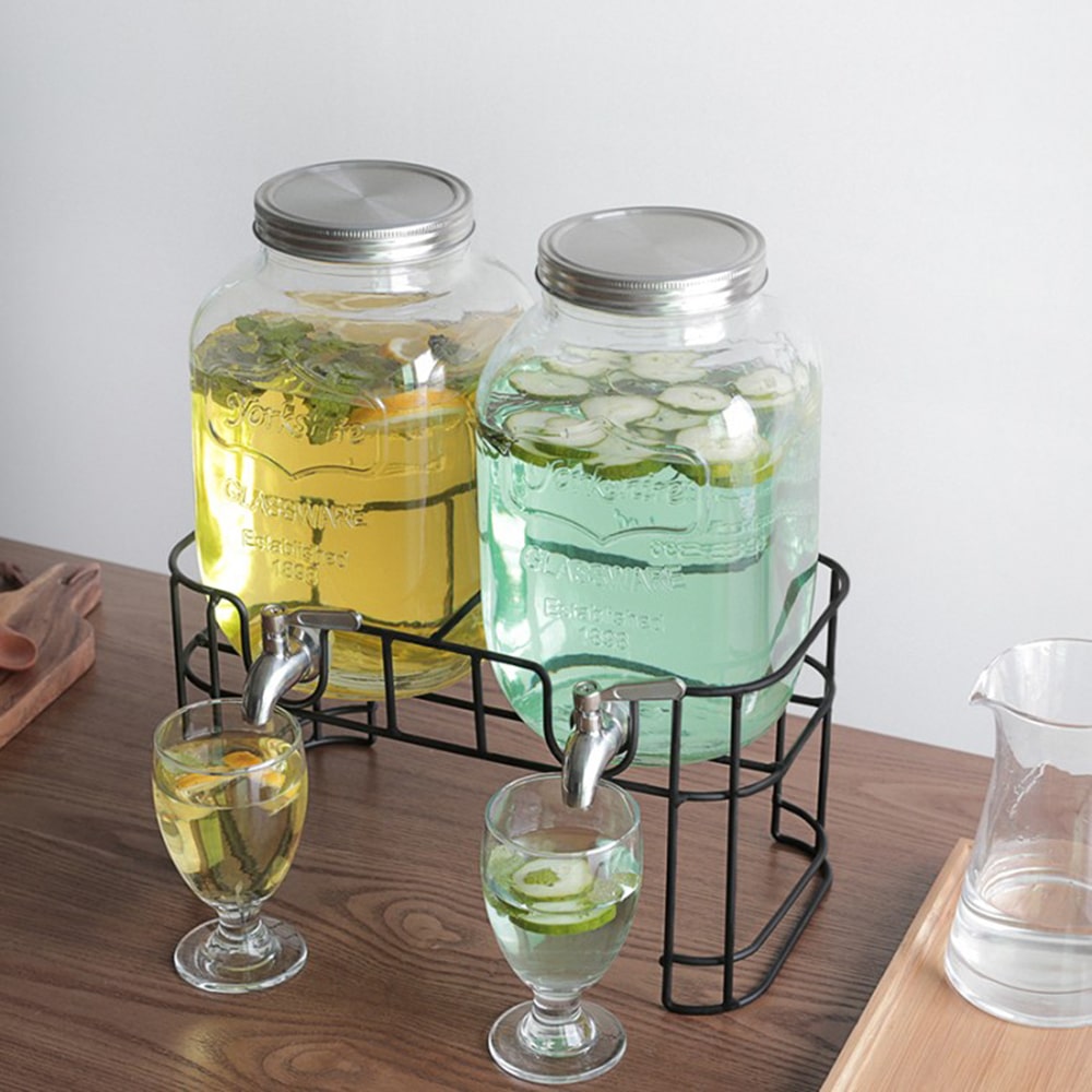 와이어 쥬스 대용량 음료 워터 디스펜서 카페 유리 글라스 물병 8L