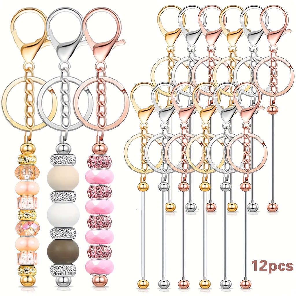TEMU 6/12개 비즈 키체인 DIY 핸드메이드용, 키체인 펜던트 제작 재료, 빈 금속 키체인, 비즈 키링, 연결봉, 비즈 키체인, 장식 액세서리, 가방, 펜던트 및 휴일 선물