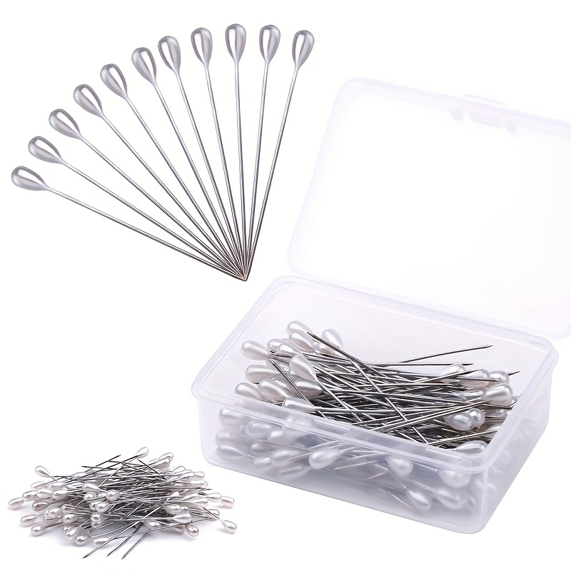 TEMU 웨딩 플라워 DIY용 코사지 핀, 핀, 물방울 진주 헤드핀, 직선 핀과 플라스틱 보관함 포함