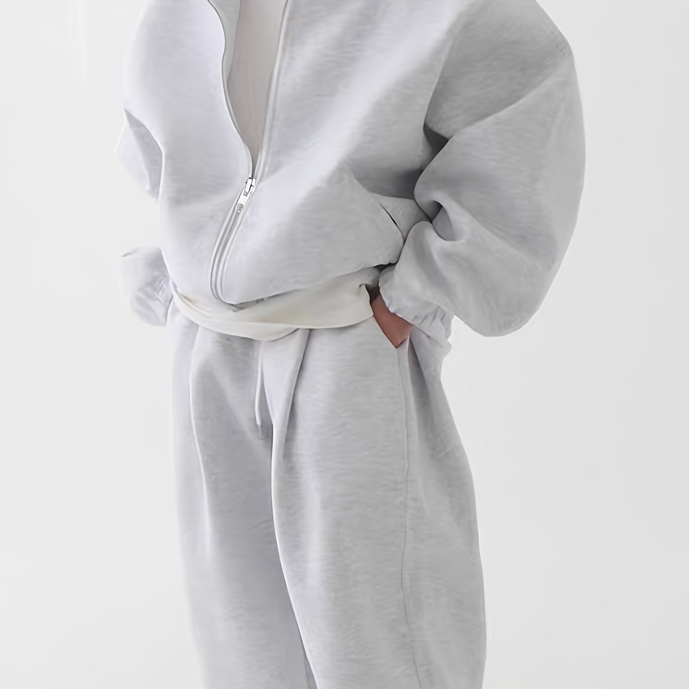 TEMU 남성용 후드 스웨트셔츠와 팬츠 세트, 플러시 후디, 홈웨어 힙합 슈트, 단색, 루즈핏 지퍼 디테일, 가을 겨울 파티 스타일 라운지웨어