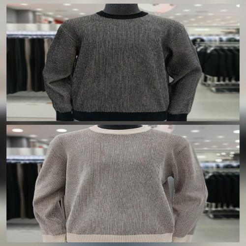 [앤드지]잔조직 스트라이프 라운드넥 니트