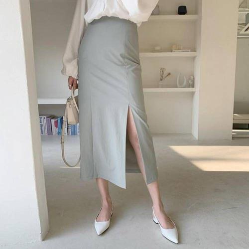 트임 밴딩 a라인스커트 청치마 더봄 일자핏 데 (WFKKO9D)