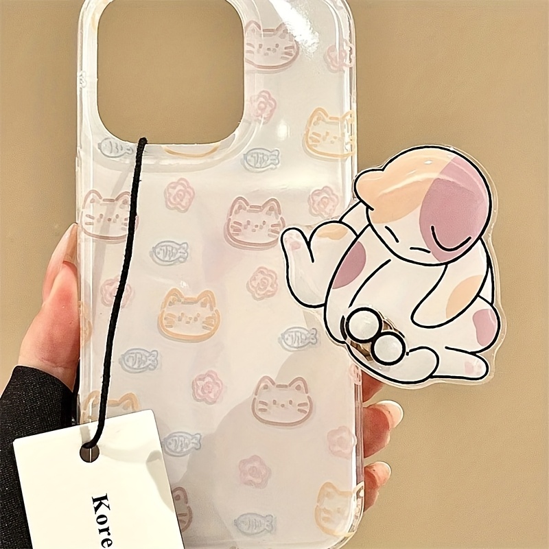 TEMU 투명 화이트 라이트 페인팅 화이트 배경 더블 레이어 컬러풀 트릭 앤 트릿 고양이 폰 케이스, 재미있는 회전 브래킷 포함, 아이폰 11 12 13 프로 맥스용