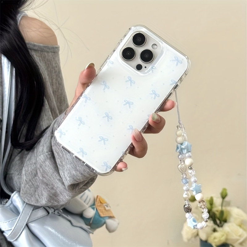 TEMU 투명 화이트 라이트 페인트 화이트 배경 더블 레이어 폴카 도트 리본 체인 폰 케이스 아이폰 11 12 13 17 프로 맥스용