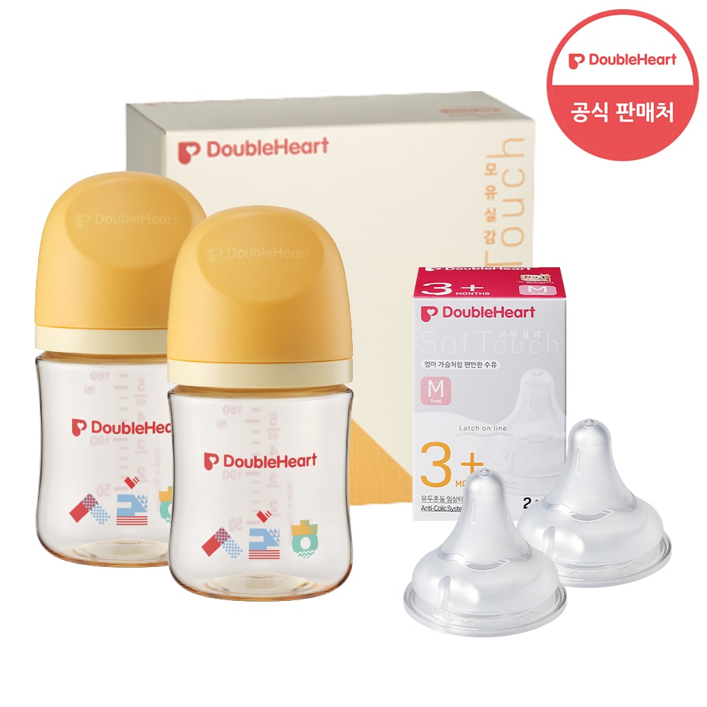 [더블하트] 3세대 160ml 트윈팩2개(젖병4개) + 젖꼭지 4개