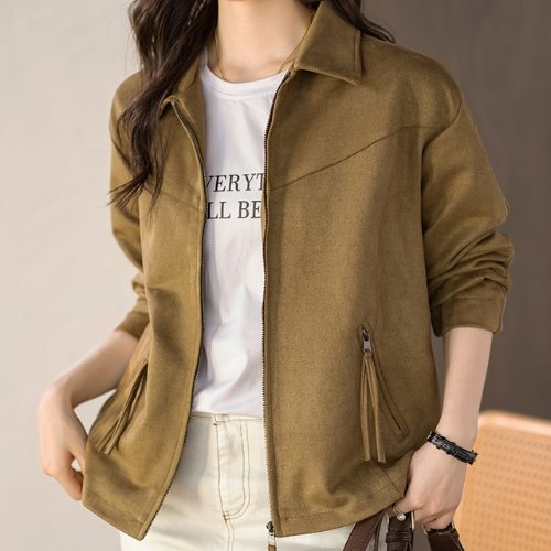 TEMU 마일라드 반응 빈티지 루즈핏 브라운 긴소매 안티벨벳 포켓 여성용 자켓, 봄/가을 출퇴근용