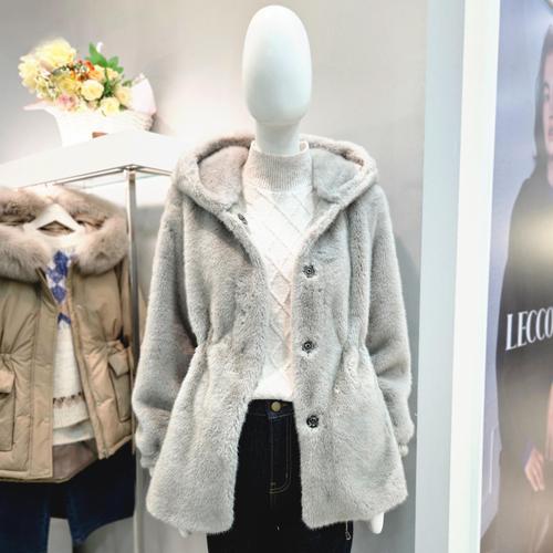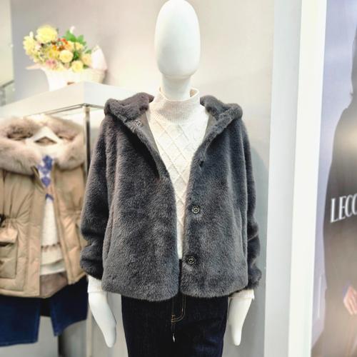 [더틸버리]페이크 퍼 무스탕 후드 재킷MTRBM3FS05W_DG