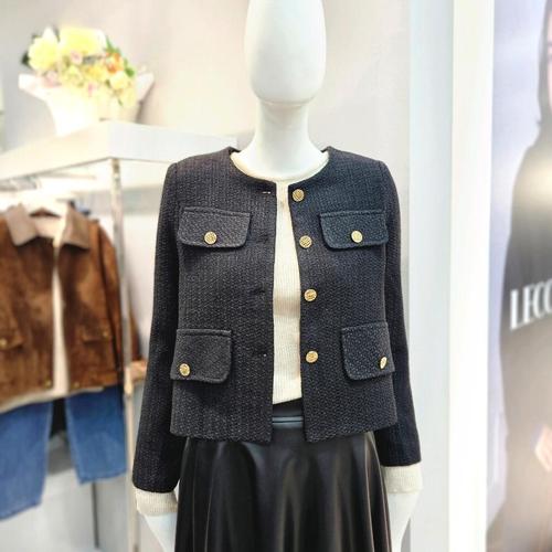 [더틸버리]금장버튼 라운드넥 트위드 재킷MTRAN0JK52W_DG