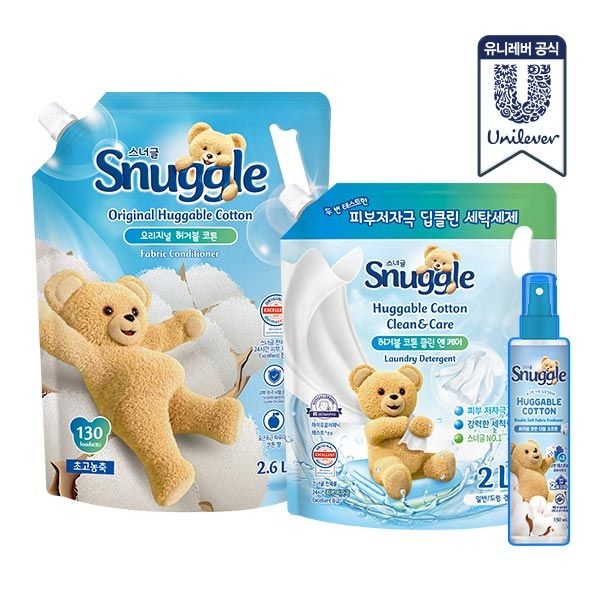 스너글 올인원 리필세트 딥클린 세제 2L+섬유유연제 2.6L+탈취제 150ml