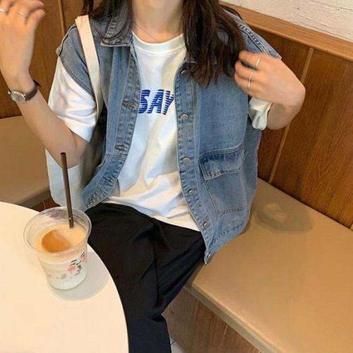 여자 청조끼 루즈핏 베스트 레이어드 자켓 쪼끼 데님 WFLQ851
