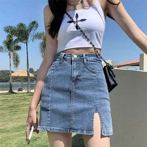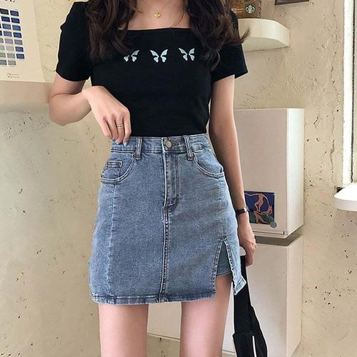 미니스커트 여성청치마 여자 데님 치마바지 미니 트임 스커트 1P