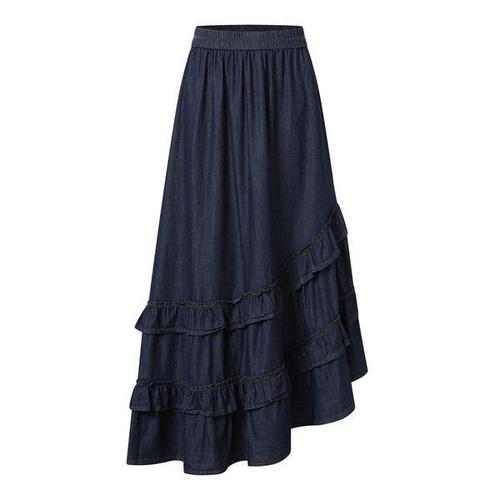 [디자이너몰]여성 데님 레이어 레이스 캉캉 롱스커트