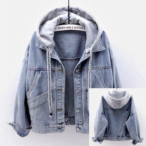 [핑크엘리제]캐주얼 후드 빅포켓 루즈핏 니레도데님자켓
