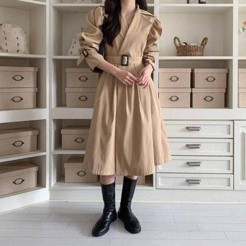 원피스 단추 벨트 데님 플리츠 하객 여성 휴양 WFKNXOK