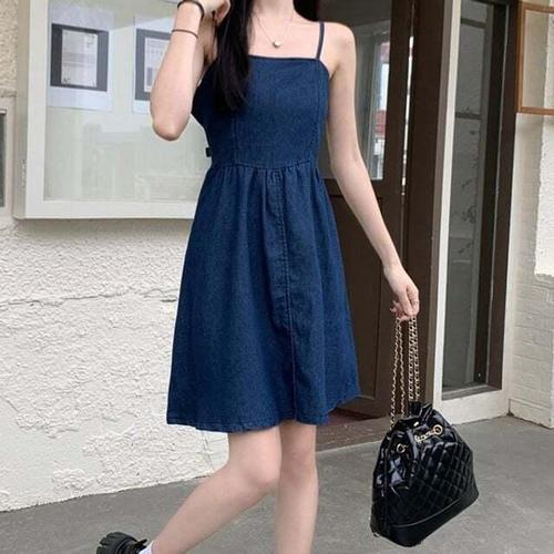 [셀럽하우스]여성 HDYV7189 데님 청 셔링 플레어 끈 나시 원피스 3color
