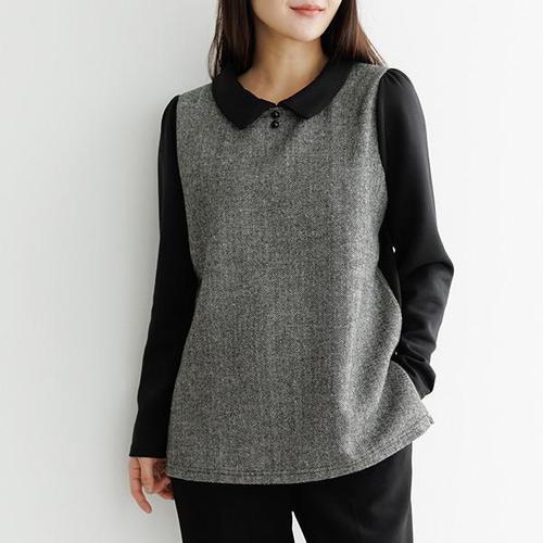 [데드라](~110size)헤링본카라블라우스 TBB6157_DO