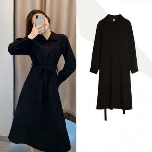 [셀럽하우스]코트느낌 LFYA5907 베이직 날씬라인 셔츠형 블랙원피스 올데이