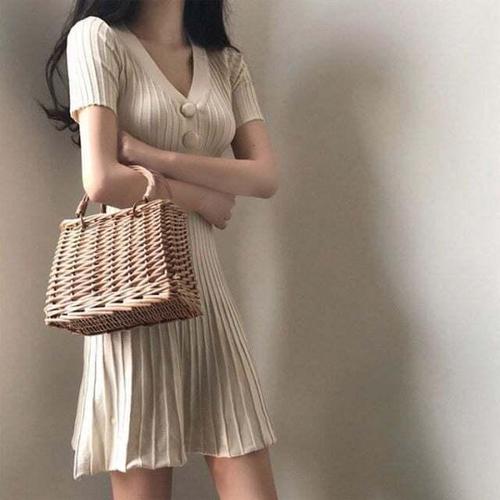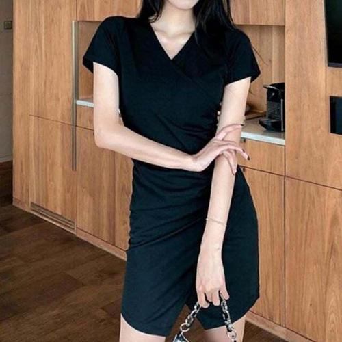 [셀럽하우스]주름 BFAE4379 데이트룩 캐주얼 하객룩 미디 필수템 반팔원피스
